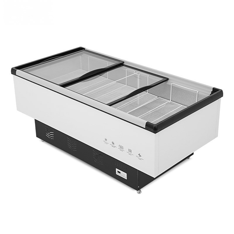 • 自動化霜島柜展示冰柜商用大容量保鮮冷凍兩用透明玻璃臥式島柜冷藏冰箱